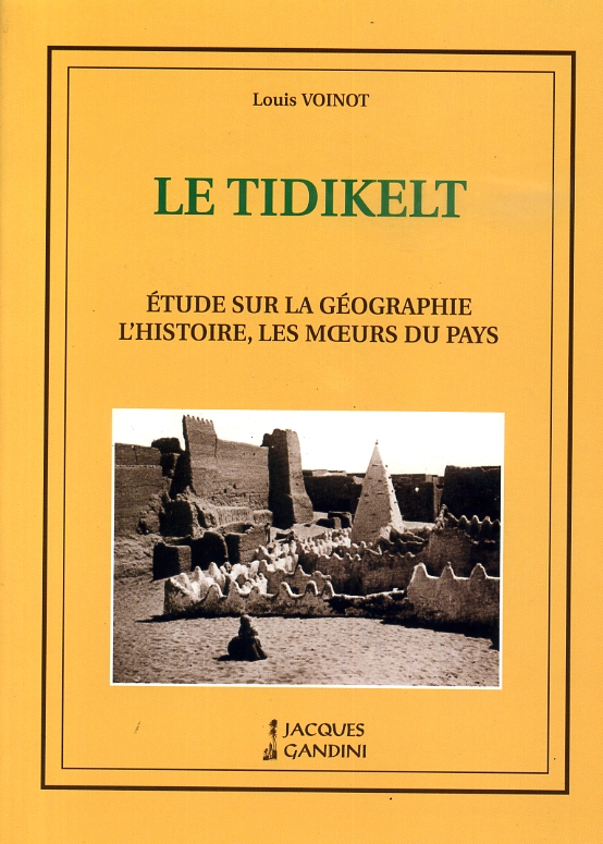 Nul n’était mieux placé que le capitaine Voinot pour présenter une étude du Tidikelt. C’est en effet dans cette région qu’il fit ses premières armes et il n’eut de cesse, par la suite, de parcourir ses pistes et de visiter ses oasis depuis le centre d’In Salah considéré comme la capitale des oasis sahariennes jusqu’à Akabli. Ce long chapelet d’oasis a été jusqu’en 1900 l’obstacle le plus sérieux à l’expansion française vers le Sud. Acteur de la conquête des oasis du Tidikelt, le capitaine Voinot en fut un observateur attentif. Délaissant pour un temps ses fonctions militaires, il va s’attacher à décrire la géographie d’une région favorisée par ses ressources en eau avec pour conséquence une densité de population inhabituelle au Sahara. Après avoir rendu compte de l’histoire ancienne du Tidikelt, Voinot rappelle brièvement ce que fut l’intervention française et les changements qui se sont opérés après la conquête française. Voinot fait preuve dans son travail d’une inlassable curiosité pour ces populations : qu’il s’agisse de l’organisation de la société, des croyances, de la vie quotidienne ou des simples travaux, rien n’échappe au regard de l’ethnographe saharien qui sait que la connaissance des autres, notamment de leurs mœurs et de leurs coutumes, est le gage le plus sûr d’une estime mutuelle. Son étude du Tidikelt apparaît donc comme un essai réussi des liens qui se tissent entre l’histoire d’une population et la géographie de son pays. Publié en 1909, cet essai sur Le Tidikelt de Louis Voinot est un document qui ne pouvait être consulté qu’en bibliothèque. Sa réédition permettra à tous de disposer enfin d’un ouvrage de référence écrit par un grand saharien.