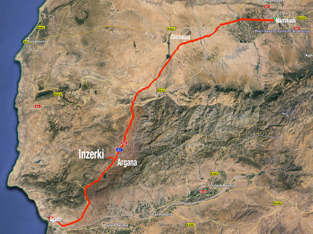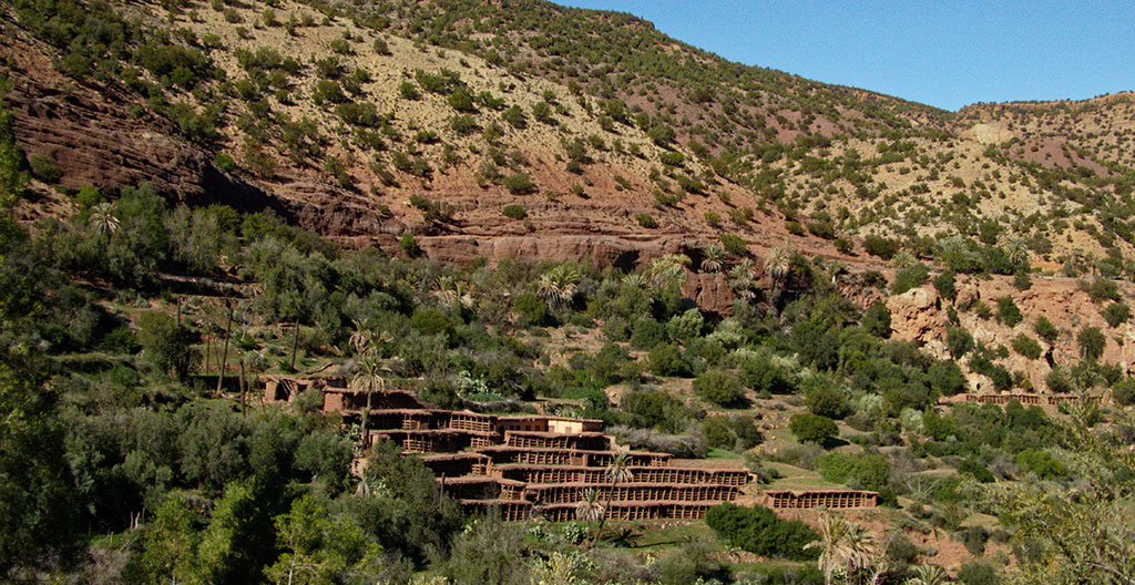 Sur la route nationale qui relie Marrakerch à Agadir, un petit détour de quelques kilomètres permet de rejoindre le rucher d’Izerki, considéré comme le plus grand rucher traditionnel du monde.