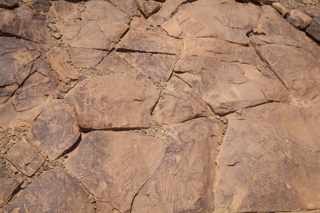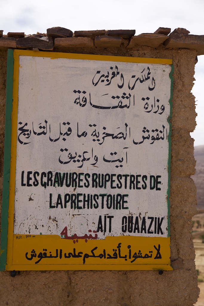 | Situé entre Tazarine et Zagora, dans la vallée du Drâa, le douar d’Aït Ouazzik est bien connu de tous les passionnés de préhistoire. A proximité du village, une piste très roulante conduit à l’un des sites de gravures rupestres les plus importants et les plus intéressants du Maroc. Des milliers de dalles, couvertes d’incisions souvent très élaborées, jonchent le sol sur plusieurs hectares : remontant à la fin du Néolithique pour la plupart, elles ont été réalisées à une époque où la savane recouvrait encore le Sahara. Les alignements gréseux d’une zone aujourd’hui aride étaient propice à cette extraordinaire expression artistique des chasseurs-pasteurs berbères qui la parcouraient alors. On découvre avec surprise des représentations, souvent très fidèles, de la faune de l’époque : éléphants, rhinocéros, antilopes côtoient girafe, échassiers, voire poissons ou canidés. Quelques figures géométriques -peut-être des enclos ?- et des formes diverses complètent ce large catalogue. Techniquement, la très grande majorité de ces figures a été réalisée par incision et polissage fin de la roche, mais on trouve aussi quelques gravures réticulées, comme une image de scorpion ou un décor sinusoïdal que l’on assimile souvent à de l’eau. A l’entrée du site, totalement ouvert, un bâtiment récent, respectant à peu-près l’architecture berbère traditionnelle, accueillera, un jour, inch Allah !, le musée. En attendant, une petite baraque abrite le gardien chargé de veiller sur les lieux et pour le moins, d’en limiter les détériorations. C’est toujours mieux que rien… |