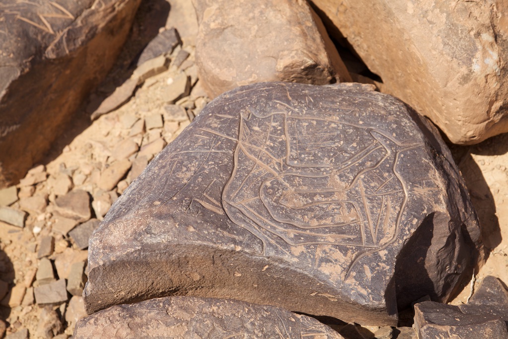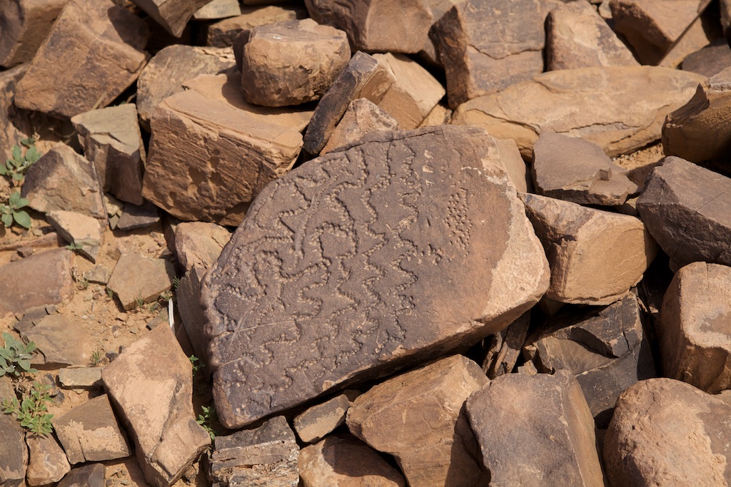 Situé entre Tazarine et Zagora, dans la vallée du Drâa, le douar d’Aït Ouazzik est bien connu de tous les passionnés de préhistoire. A proximité du village, une piste très roulante conduit à l’un des sites de gravures rupestres les plus importants et les plus intéressants du Maroc. Des milliers de dalles, couvertes d’incisions souvent très élaborées, jonchent le sol sur plusieurs hectares ...