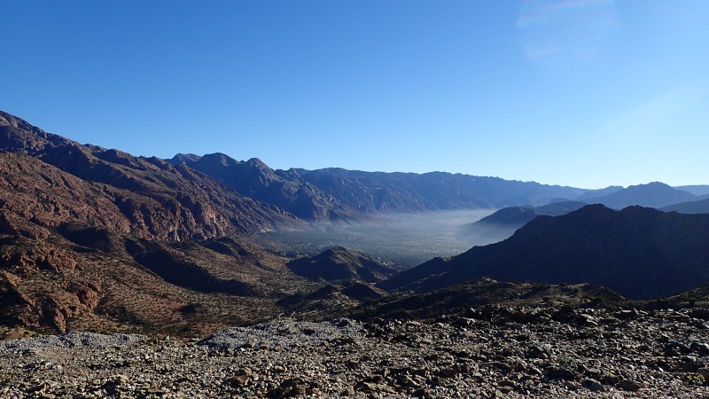 La vue est superbe. En plus, on prend vite de la hauteur. Au fond, derriere ces montagnes, l'océan n'est pas loin.