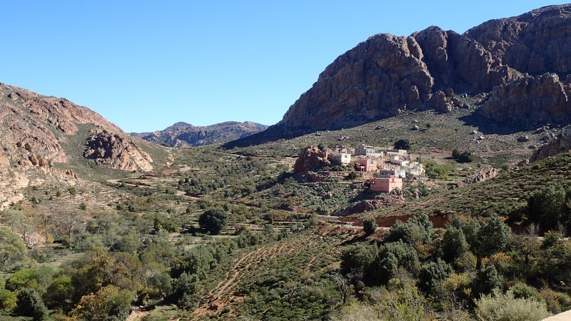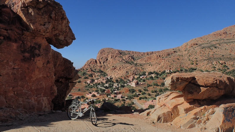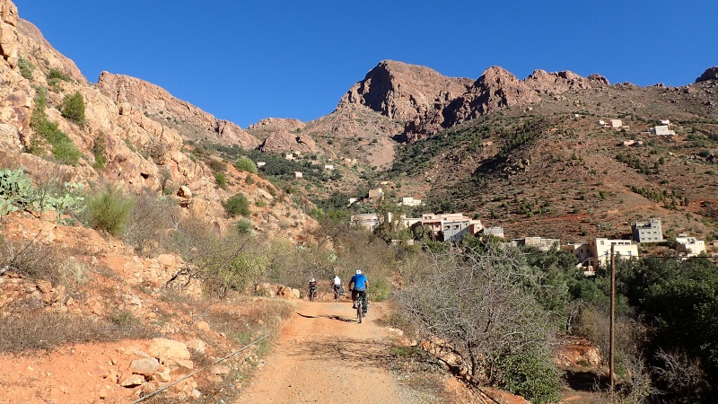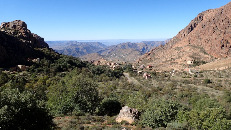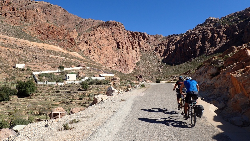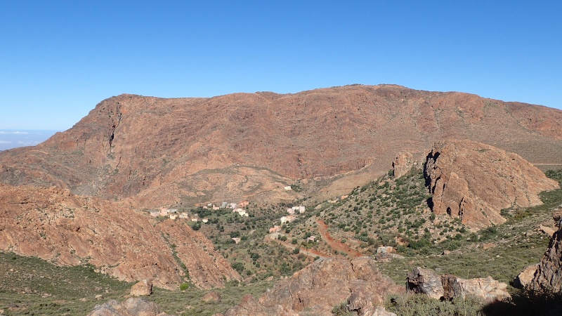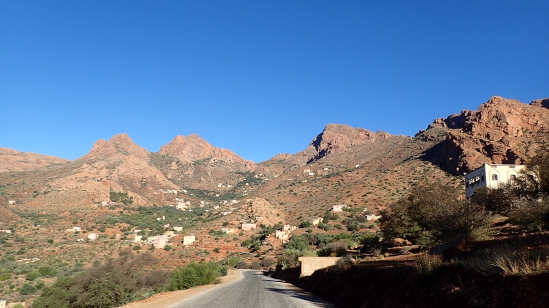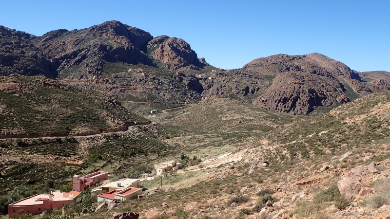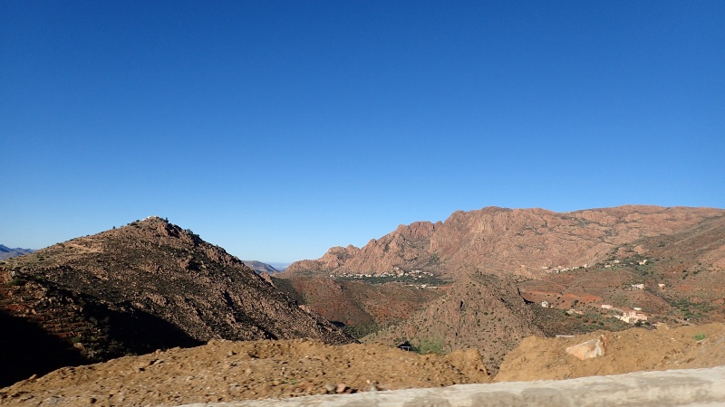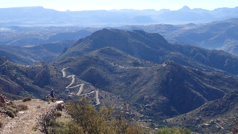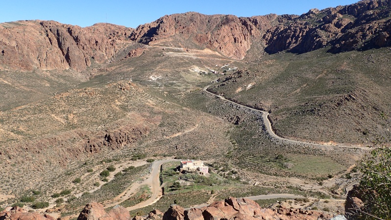 Après avoir pris un moment au col, pour savourer et profiter de la vue, nous voici repartis pour la descente finale sur le douar Tanalt. 7.5 km de descente à 8.5%. 3km de piste, et la fin en goudron. En 1/2 h nous serons en bas.