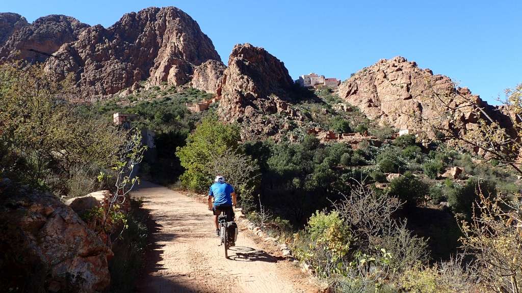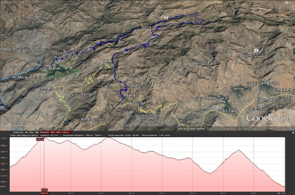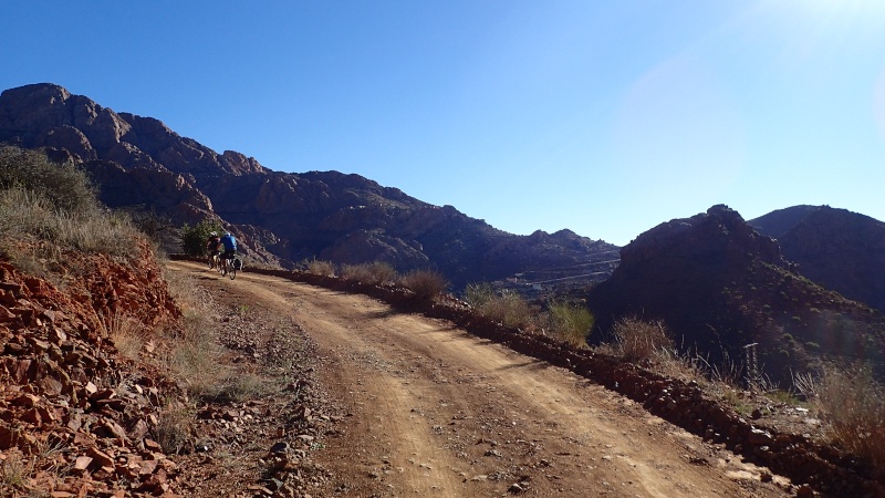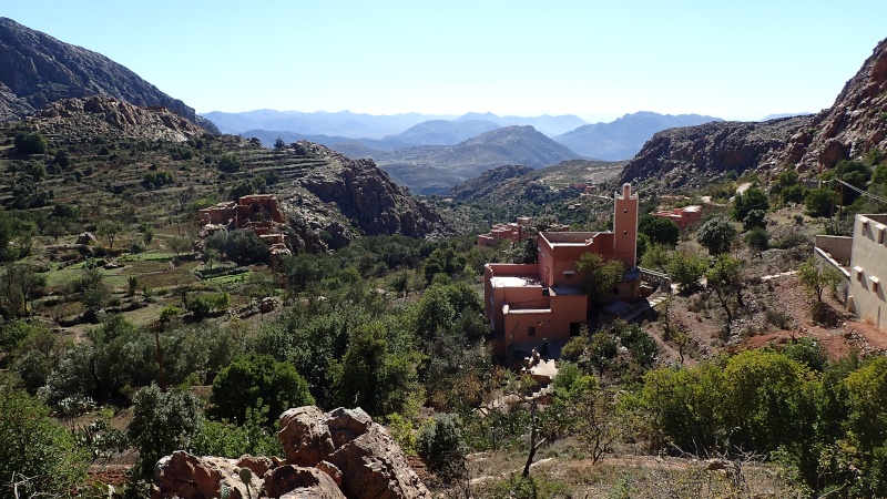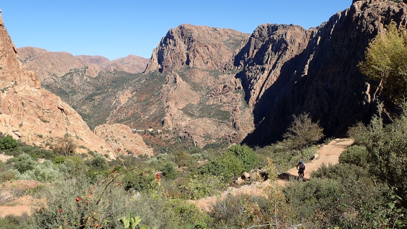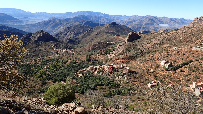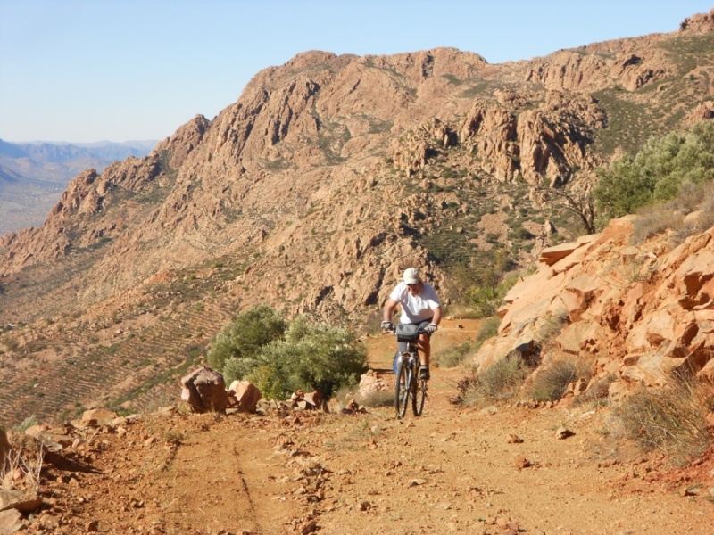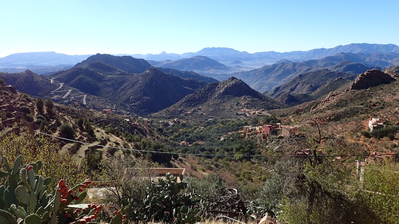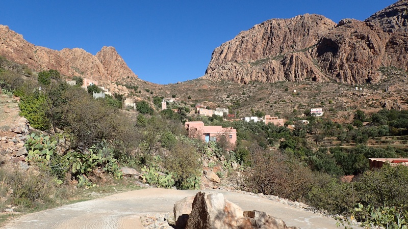 Après avoir pris un moment au col, pour savourer et profiter de la vue, nous voici repartis pour la descente finale sur le douar Tanalt. 7.5 km de descente à 8.5%. 3km de piste, et la fin en goudron. En 1/2 h nous serons en bas.