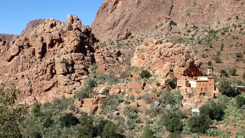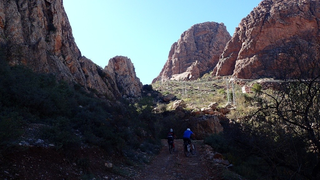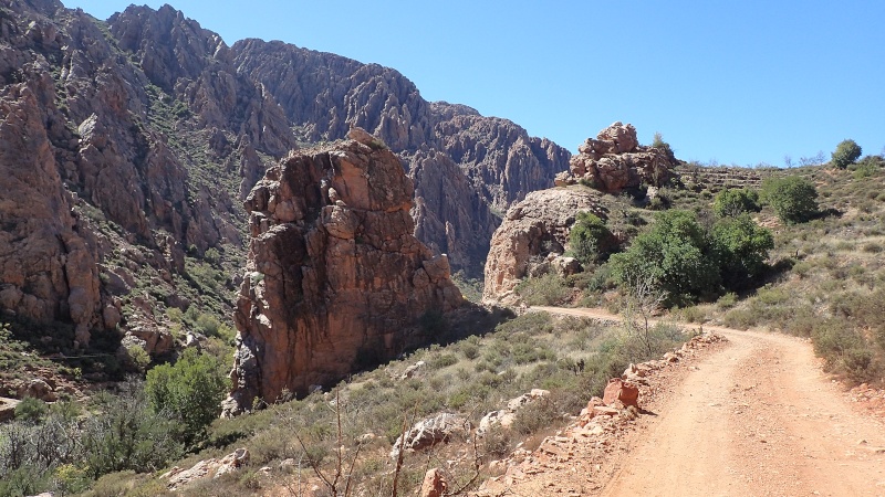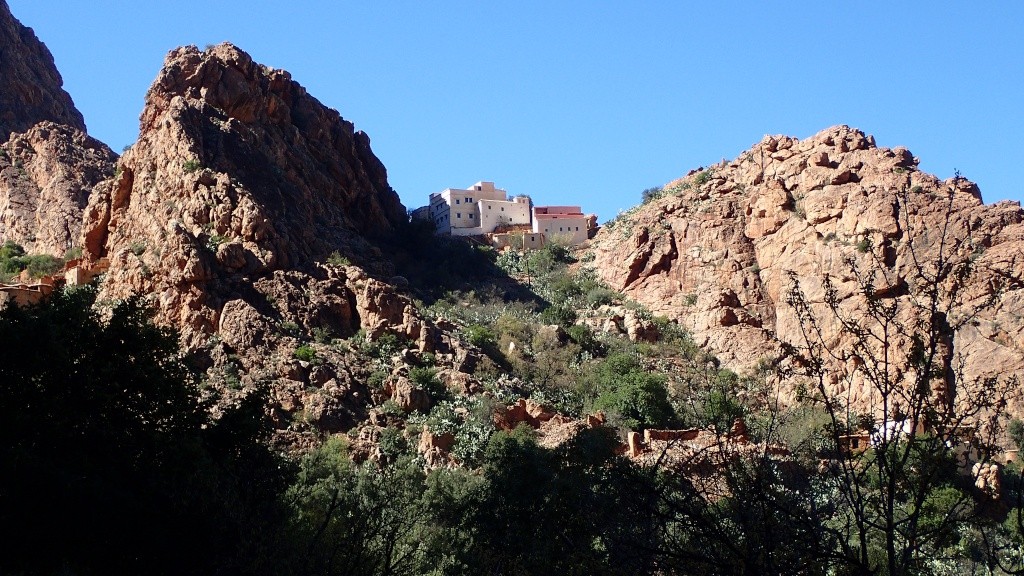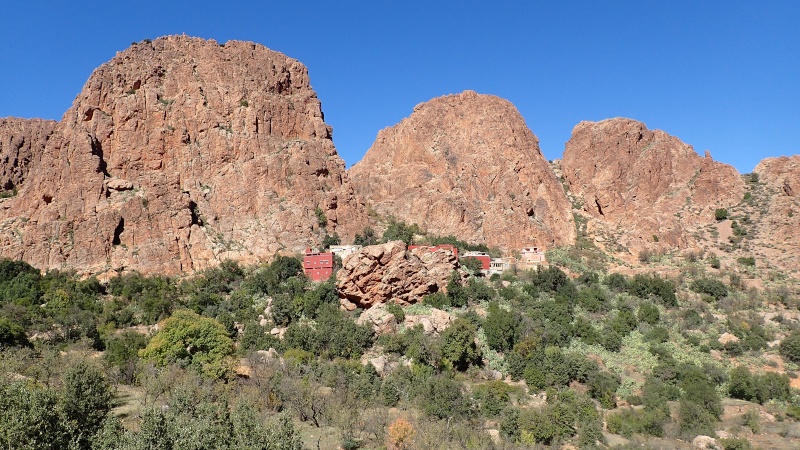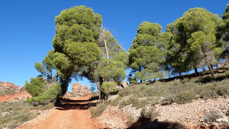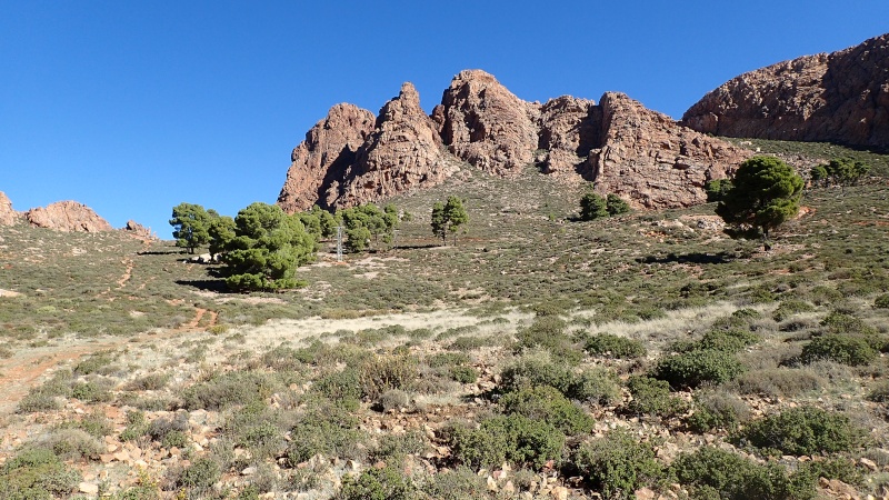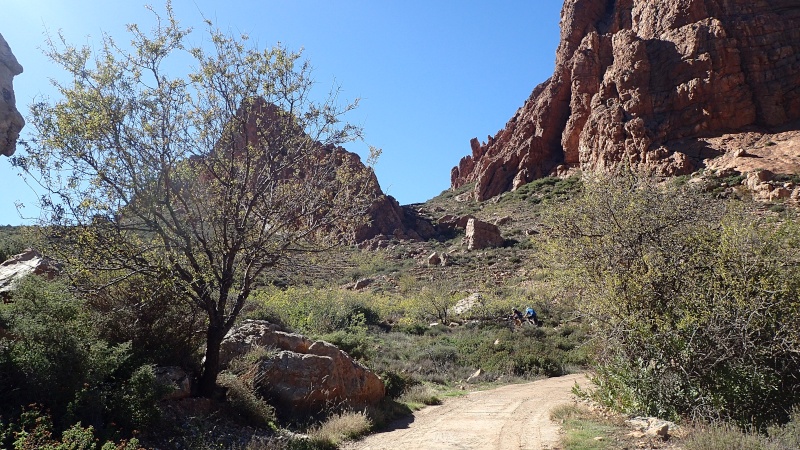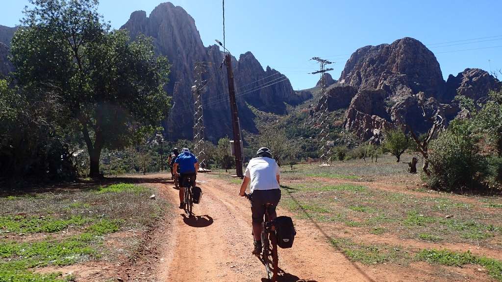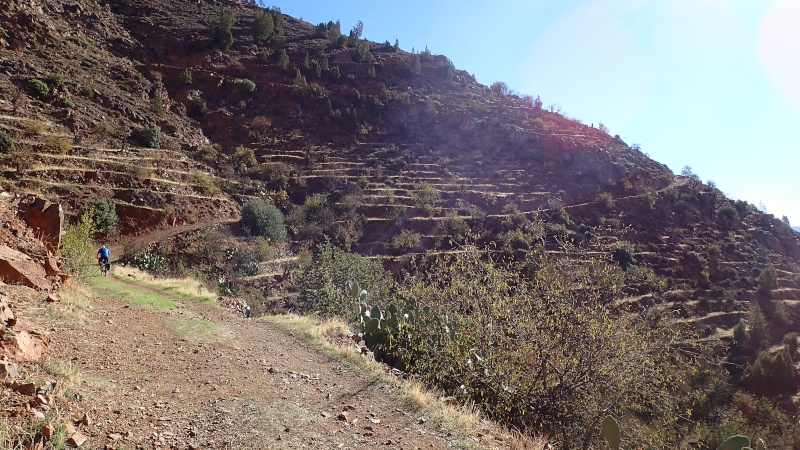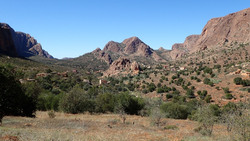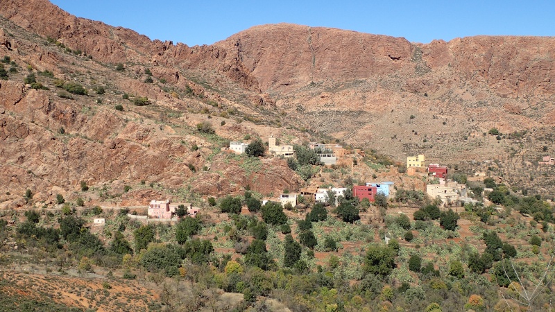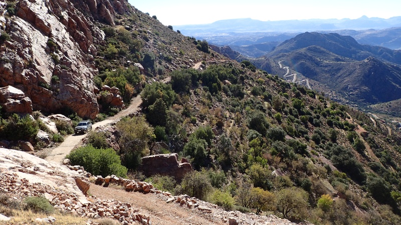 Nous voici arrivés au carrefour avec la piste que nous allons prendre, et qui va nous ramener vers l'ouest. Il est à peine midi, nous décidons de rouler encore un peu. Dans 6km, il y a un petit col, et je dis à Boulemane de nous attendre là-bas pour le picnic. Piste super agréable serpentant au milieu d'un maquis parsemé de village tout colorés.