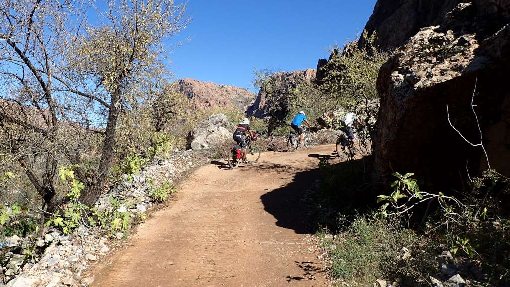 Cette bonne grimpette terminée, nous voici repartis à la descente. Après un bon km, nous rejoignons le goudron, que nous allons suivre pendant 16km. Les montées et descentes s'alternerons, avec notamment une bonne montée de 4km à 6%. Les villages colorés fleurissent à chaque virage...