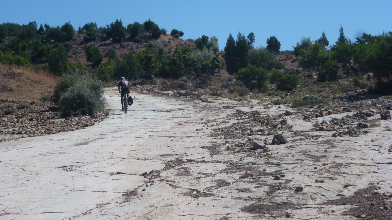 Comme je le disais précédemment, nous arrivons au pied de cette terrible montée, qui commence par un premier kilomètre avec un revêtement en pierre sous forme d'une dalle, avant de se transformer en terre. Au totalelle totalisera quasiment 5 km pour 500m de D+. On la montera en 1h15 sous un cagnard terrible, avec des petits passages à plus de 20%.