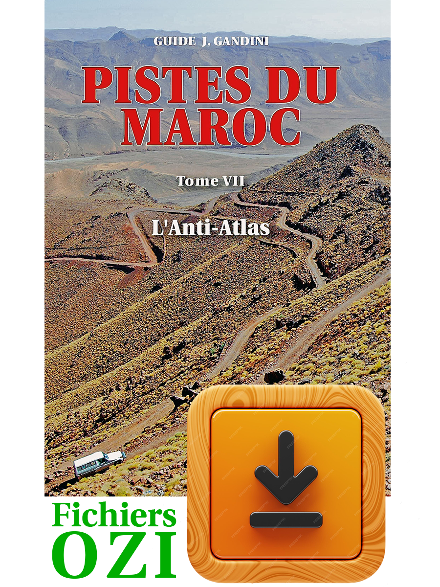 La totalité des parcours de l'édition 2013 du tome 3 de Pistes du Maroc (L'Anti-Atlas) en fichier au format OZI à intégrer dans votre appareil équipé du logiciel Ozi Explorer.